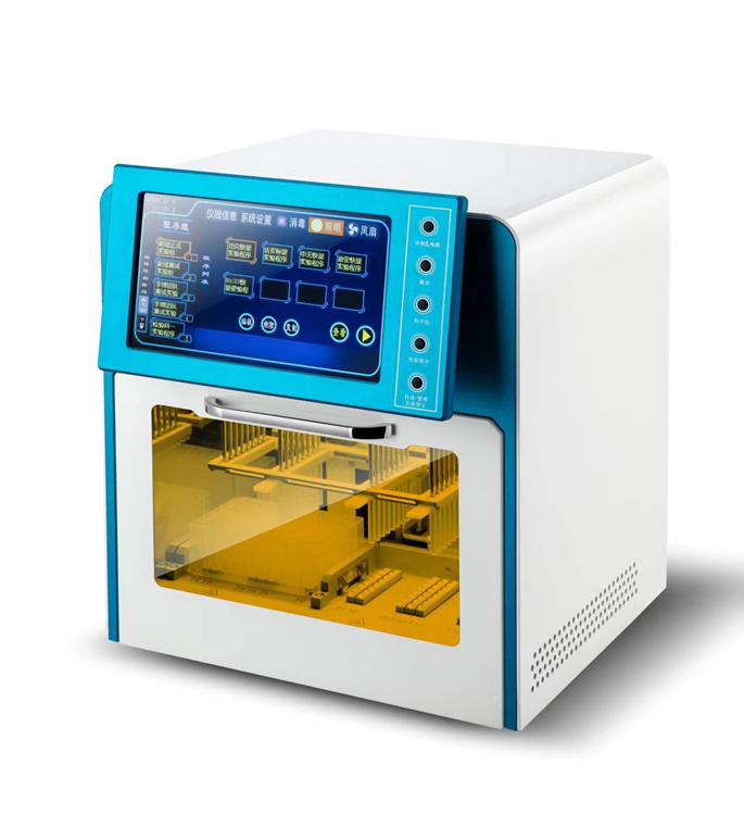全自动核酸提取仪,是一款操作简单、提取稳定高效、高性价比的自动核酸提取工作站。可以从动植物组织、细胞、全血、病毒等多种类型样本中自动分离纯化核酸,所提取核酸满足后续分子生物实验需求。广泛应用于科学研究、临床分子诊断、动植物疫病检测等领域。