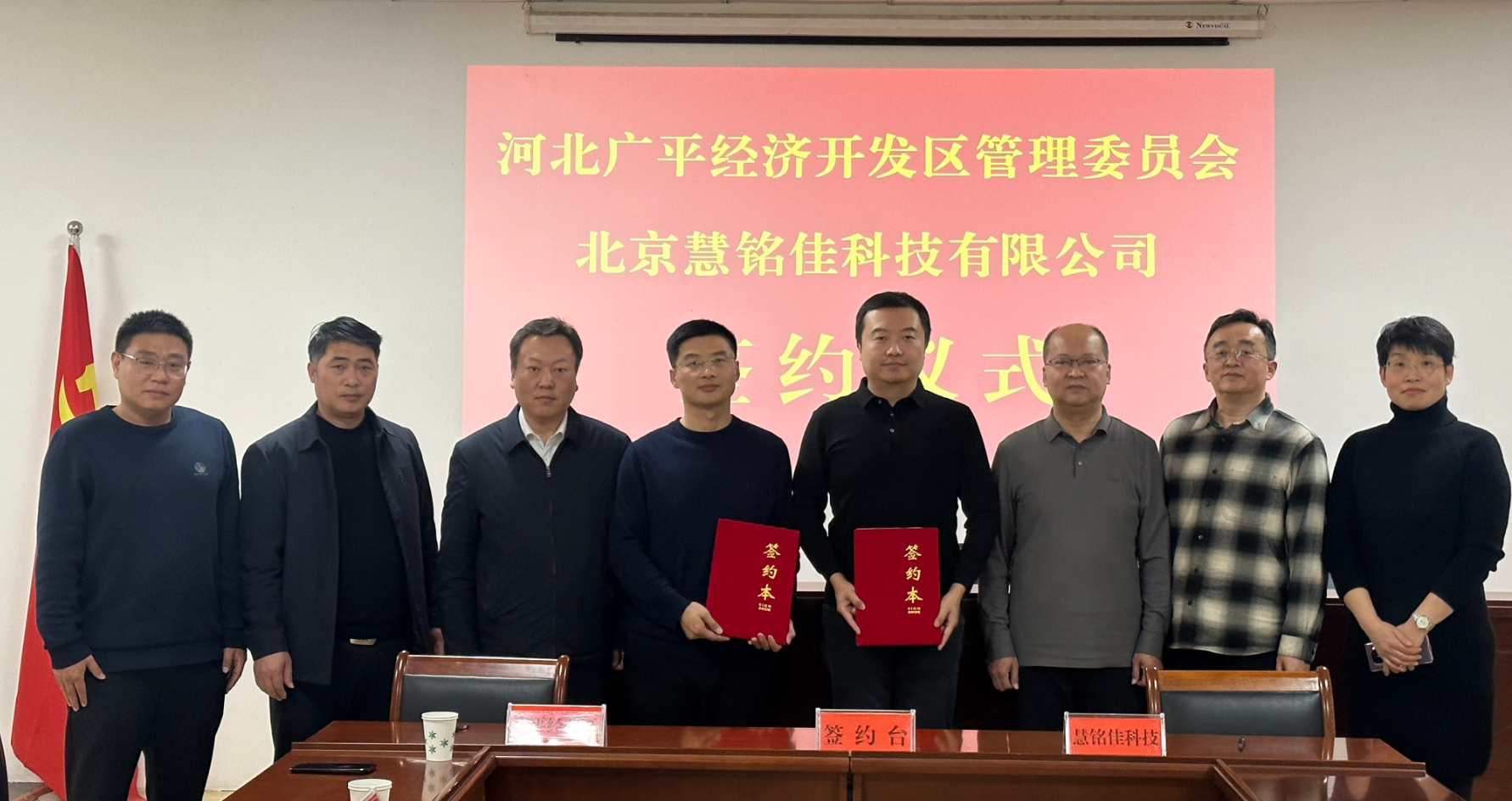 乙巳年腊月廿四小年交替,在河北省邯郸市广平县政务服务中心,“广平数智健康产业园”项目签约仪式隆重举行。广平县开发区管委会副书记赵广军、北京慧铭佳科技有限公司(以下简称“慧铭佳”)董事长林渤代表双方签字,广平县民政局局长刘章军、广平县投资促进服务中心副主任刘清华、河北广平经济开发区投资促进局局长单保兴、河北广平经济开发区经济发展局局长张丽鹏出席签约仪式。全国首创的“县域AI+医养健康服务”项目正式启航。