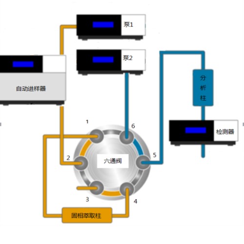 近年来,随着液相色谱仪技术的迅速发展,HPLC自动化程度越来越高,加之色谱柱颗粒技术的发展,使得色谱分离的时间大大缩短。无疑,样品的前处理技术实现自动化,将会为实验室人员带来极大的益处。尤其是当面临大量样品且前处理过程繁琐时,自动化是理想的选择,这也与HPLC技术发展相匹配。固相萃取是当前常用的样品前处理技术,分为在线和离线两种方式,用于样品的净化、除杂和富集。离线固相萃取具有试剂用量少、节省时间、易于SOP等优点。其缺点为SPE固相萃取柱仅能使用一次,成本较高。而在线固相萃取技术(online SPE)能把活化、平衡、除杂和洗脱等过程在封闭系统内自动化完成,减少人工操作带来的误差,提高方法的准确性和精密度,不仅能加快样品的前处理过程,而且SPE柱可重复使用,总的分析成本将大大降低;更为关键的是在线SPE柱(3~10μm)比离线SPE萃取管柱效更高,分离度更好,样品更干净,更易于后面的HPLC分离。